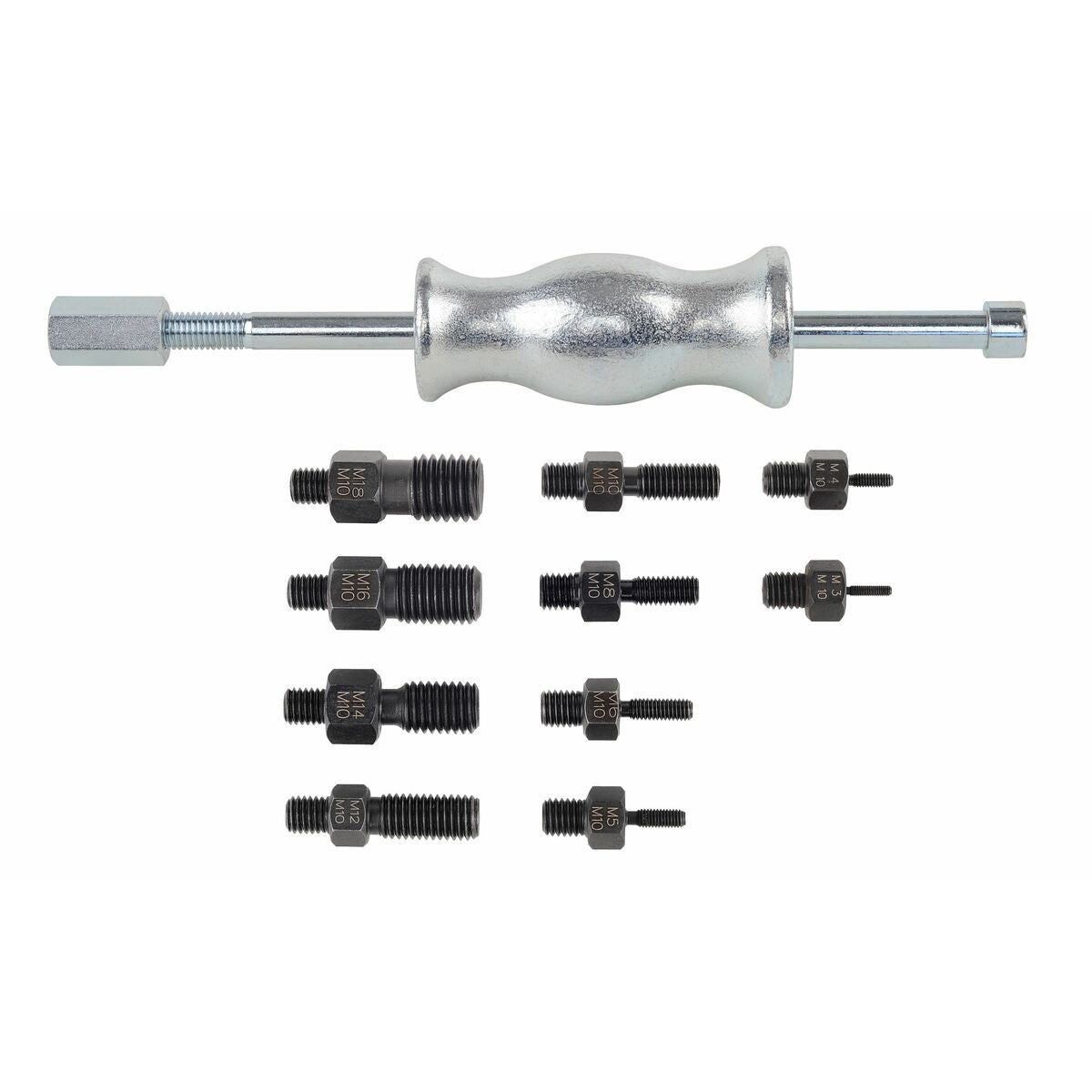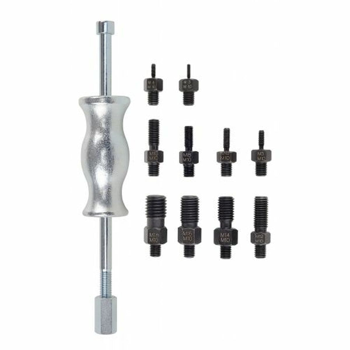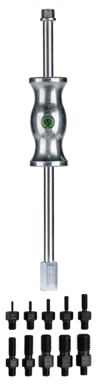 Gli estrattori della serie 223 vengono utilizzati per estrarre parti con fori filettati centrati in artigianato, industria e officina. L'estrattore a battente è in grado di farlo insieme agli adattatori filettati. Grazie al pezzo scorrevole ergonomico e massiccio, la forza applicata può essere trasmessa in modo ottimale e si ottiene un effetto di urto potente. Inoltre, ciò garantisce un'estrazione senza contatto e delicata.