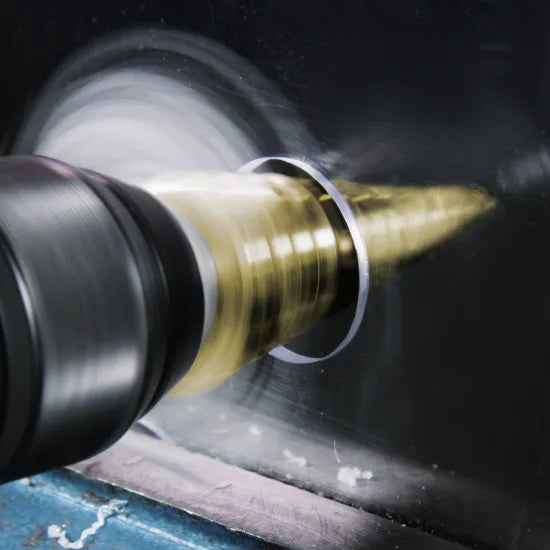 Le scanalature elicoidali rettificate CBN garantiscono una lavorazione silenziosa e prestazioni di taglio elevate. In particolare, il flusso del truciolo è ottimizzato, così anche i trucioli lunghi e continui vengono rimossi facilmente. Il flusso ottimizzato del truciolo protegge i taglienti e riduce la formazione di tagliente di riporto e segni di saldatura a freddo. Il cono facilita l'estrazione dell'utensile dal materiale.