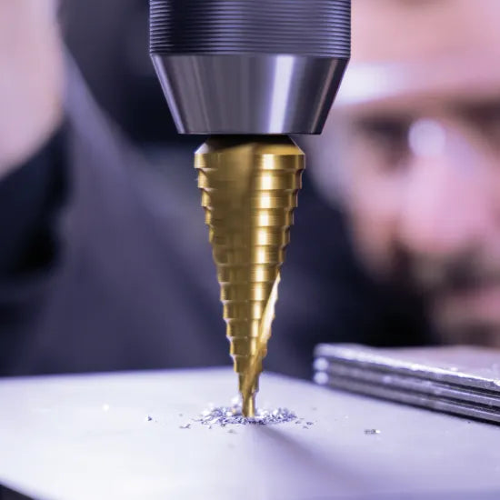 Punta a gradini HSS- TIN (Rivestita con Nitruro di Titanio), scanalatura elicoidale e punta autocentrante. Codice Articolo : 101060T