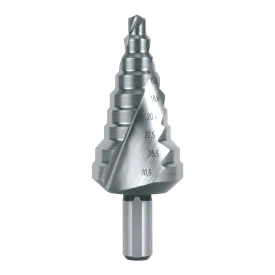 Punta a gradini HSS, scanalatura elicoidale e punta autocentrante